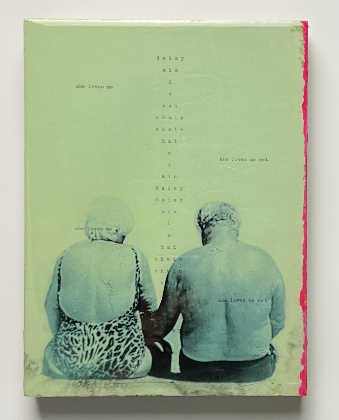 Durch einen unkonventionellen, innovativen Mix aus verschiedenen Techniken und Materialien – Druckgrafik, Zeichnung, Malerei, Collage und Epoxidharz – entstehen diese Kompositionen mit einer einzigartigen, neuen Stilistik.